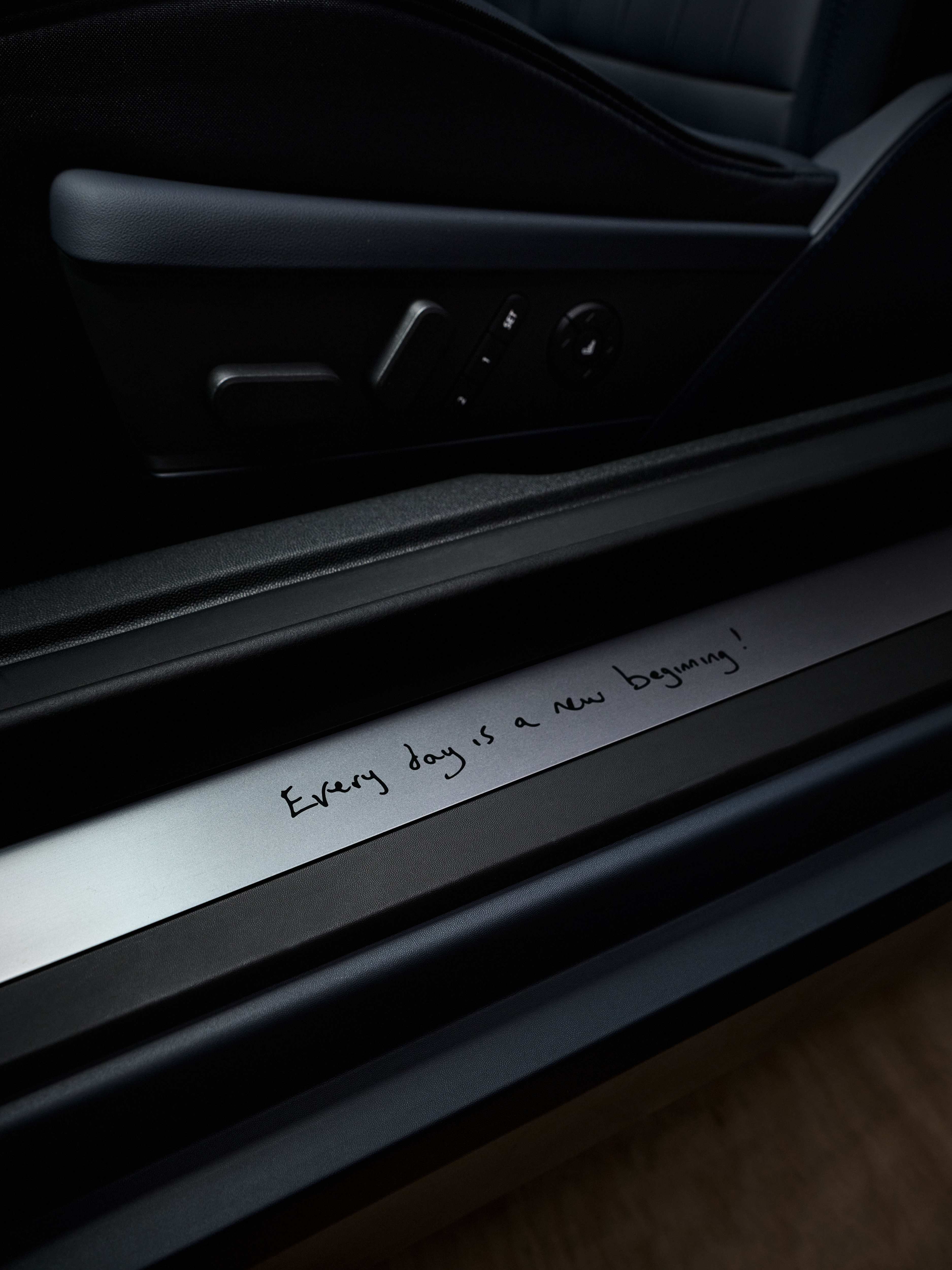 新车还融入了设计师带有温度与趣味的设计语言。解锁车门时地面投射出的手写体“Hello”问候、脚垫上寓意幸运的手绘兔子,为车主带来了暖心的慰藉。Paul Smith坚持在轮毂盖签名、迎宾踏板文字等部件使用手写字体,这类非标准化的零部件对工业化生产带来了巨大的挑战。MINI工程师为此开发了专属零部件,按照宝马集团统一的质量标准进行测试、验证和生产。这些原厂零部件都有独立编号,即使未来这款车型停产,零部件也能持续供应至少12年。